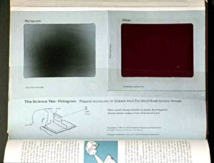 The collection holds a wide variety of publications which include holograms. Several of them are illustrated and grouped into the above sections.