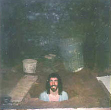 "I shot the dragon hologram before the RPS Holography Exhibition at Bath in 1983. John Brown had some on sale in the shop there but I was becoming dissatisfied with the overall look of the scene. The master hologram setup was still intact at the other end of the table. I decided to re-shoot it, changing the viewing angle to a more dynamic upward view and adding a flame breathing effect at a certain angle. The increased object beam light in the copy stage upped the brightness from green to yellow. The first Dragons were now referred to as Green Dragons and the remastered ones as Golden Dragons. John was not at first best pleased to hear I had made a new edition of Dragon to restock the RPS Bath Shop but soon agreed they were better. In the end a very limited number of Green Dragons were made. The high view in a Green Dragon plate was an aerial view of the skulls and bones surrounding the creature, whereas in the remastered hologram the beast towers over you and the back projected sky brightly illuminates the stark landscape."