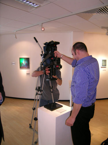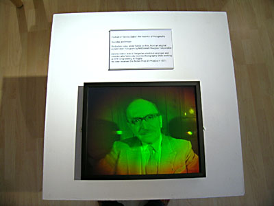 | BBC filming the Dennis Gabor holographic portrait which was added to the exhibition for the Rugby venue. | |||||||||