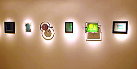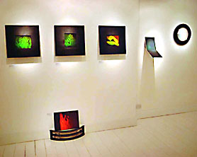 Some artists’ work is now becoming quite rare, as they did not make large editions in the firstplace, and hard to trace as there is no established secondary market in holography. I started collecting Margaret Benyon’s work in 1985, by which time she had already produced a considerable body of work. Recently I have tried to fill in some gaps in my collection and it has taken several years of negotiation to get the pieces I wanted. Now I am proud to own one of Margaret’s first laser transmission works, Interference Box (1969), a beautiful mixed-media piece from her Australian period, Secret Sacred III (1979/2000), and three pulsed laser pieces from her Conjugal Series (1983). Interference Box is being shown on a new laser diode display, designed by Mike Anderson